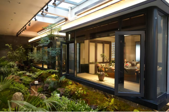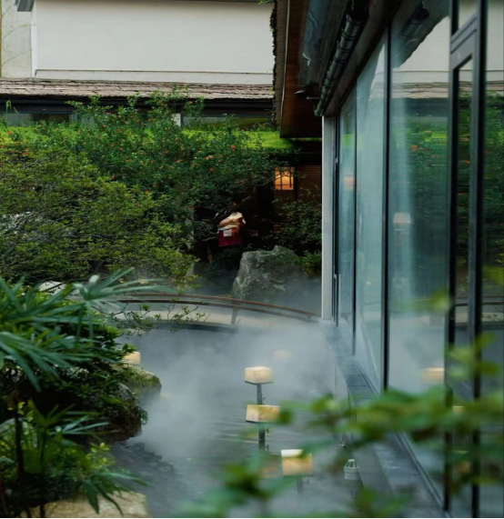 “一进院子就被惊艳了!小院深处藏着一弯木桥,桥下活水绕着石墩缓流,岸边藤萝攀着廊柱,四周绿树环合,层层叠翠,将整个庭院裹进一片清幽的绿荫里,满是雅致的庭院意趣。”周末,带着家人来桂湘满楼聚餐的市民陈先生,刚踏入酒店庭院就被眼前的景致惊艳,忍不住拿出手机拍照。