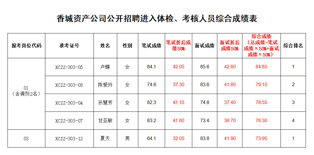 关于对香城资产公司公开招聘进入体检、考核人员进行公示的通知