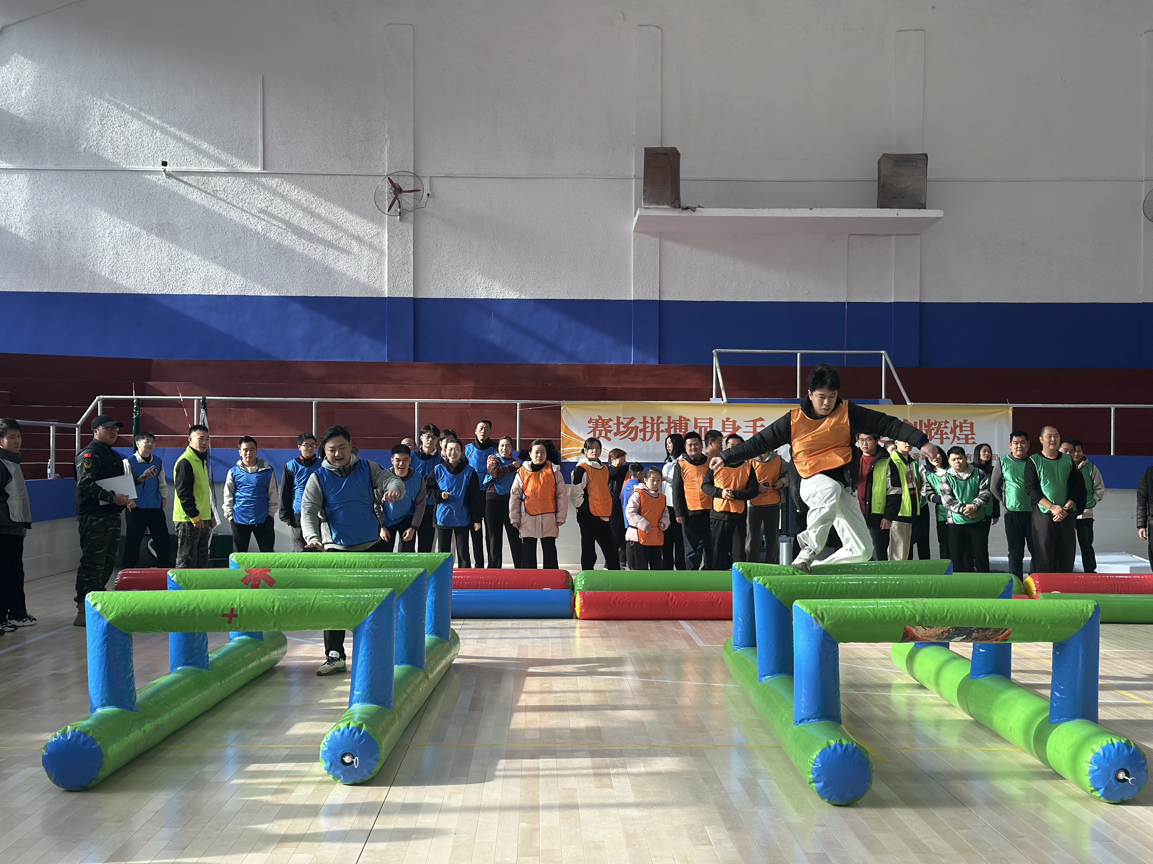 本次运动会聚焦趣味性与团队协作,共设置了“障碍四件套”“旱地龙舟”“同心鼓”“真人冰壶”及“袋鼠跳接力赛”五个集体项目,不仅考验职工个人身体素质,更着重于团队成员间的策略配合、默契程度与协同执行力。赛场上,各支队伍激烈角逐,精彩场面层出不穷。在“旱地龙舟”中,队员们口号响亮、步伐齐整,奋力向前的景象生动诠释了“力出一孔”的团队理念;在“同心鼓”项目中队员们极致专注、细腻配合,每一次颠球的起落都凝聚着全队的智慧与信任;在“障碍四件套”和“袋鼠跳接力赛”中,队员们彼此鼓励、接续拼搏,现场加油声、欢笑声此起彼伏。经过一上午的愉快角逐,各项赛事圆满结束。在专业教练团队密切组织下,整体赛事流程顺畅,现场还设有医疗点与安全小组。